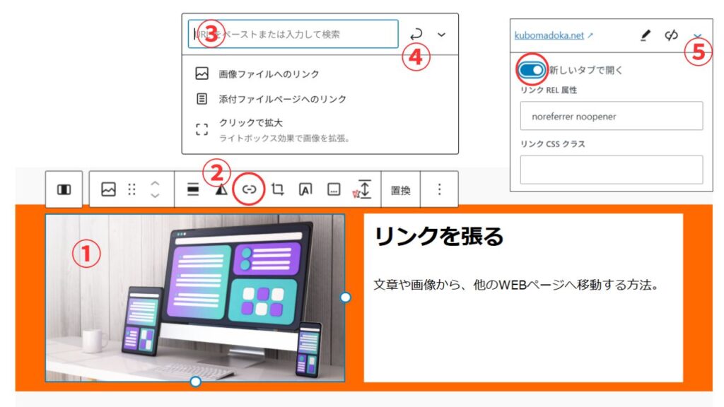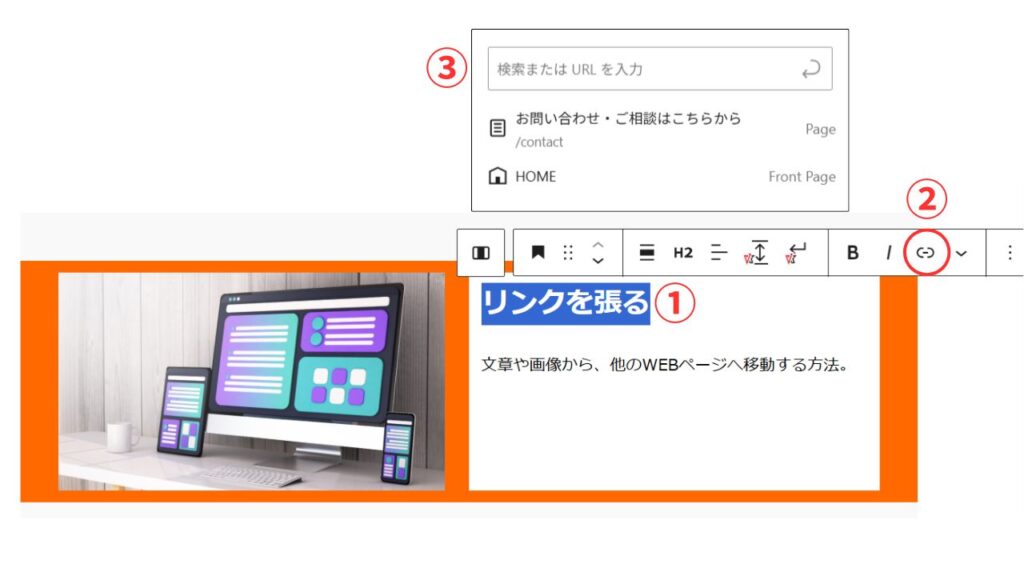 文章や画像から、別のWEBページへ移動する(リンク)方法です。